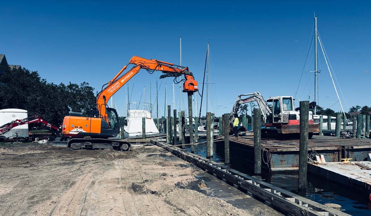 At Northeastern Marine Construction, we install and replace marine pilings that form the foundation of safe, stable waterfront structures. From piers, docks, boat lifts, and even elevated waterfront homes, properly installed pilings are critical to long-term durability especially in the demanding coastal conditions of the Outer Banks and Northeastern North Carolina.